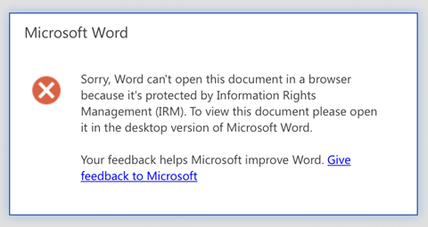 In case you cannot open or download the protected document with errors like the followings, please save it to OneDrive and open with Word for iPad (need to sigh in with your Office 365 account first).