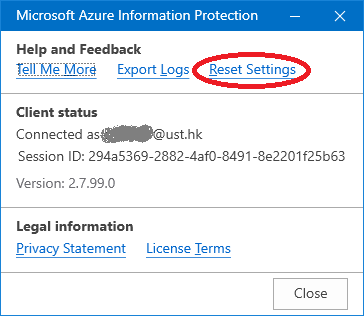 In case there is problems to protect your file using AIP, you may try reset the AIP client: