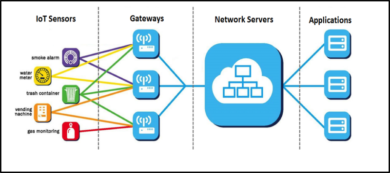 The IoT Network Service is based on the LoRaWAN (Low-power, Long-range Wide Area Network) communication technology that uses the unlicensed spectrum (in the H.K., the 923MHz band).  ITSO has installed multiple Indoor and Outdoor LoRaWAN Gateways to provide network coverage across whole Campus. The following diagram illustrated the LoRaWAN Network Infrastructure: