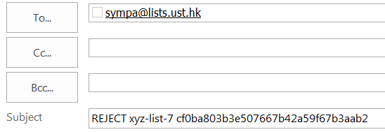 Below are examples of DISTRIBUTE or REJECT the message sending to the xyz-list-7@lists.ust.hk: