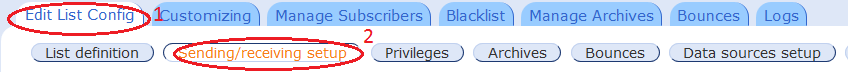 3. Select Edit List Config and then Sending/Receiving Setup